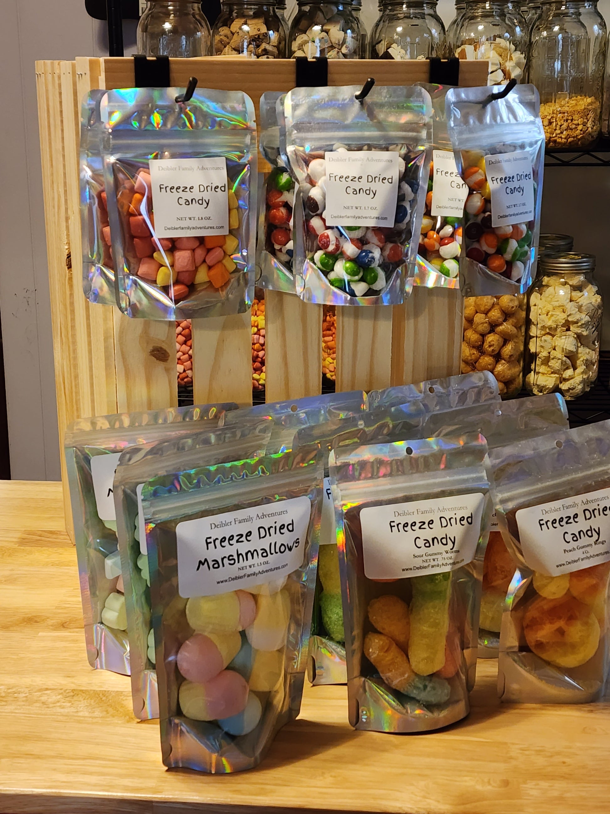 This is the refill for the camp ground kit. It comes with 12 rainbow crunch, 6 berry crunch, 6 mini Sun burst, 6 sour gummy worms, 6 peach rings and 6 marshmallows.
