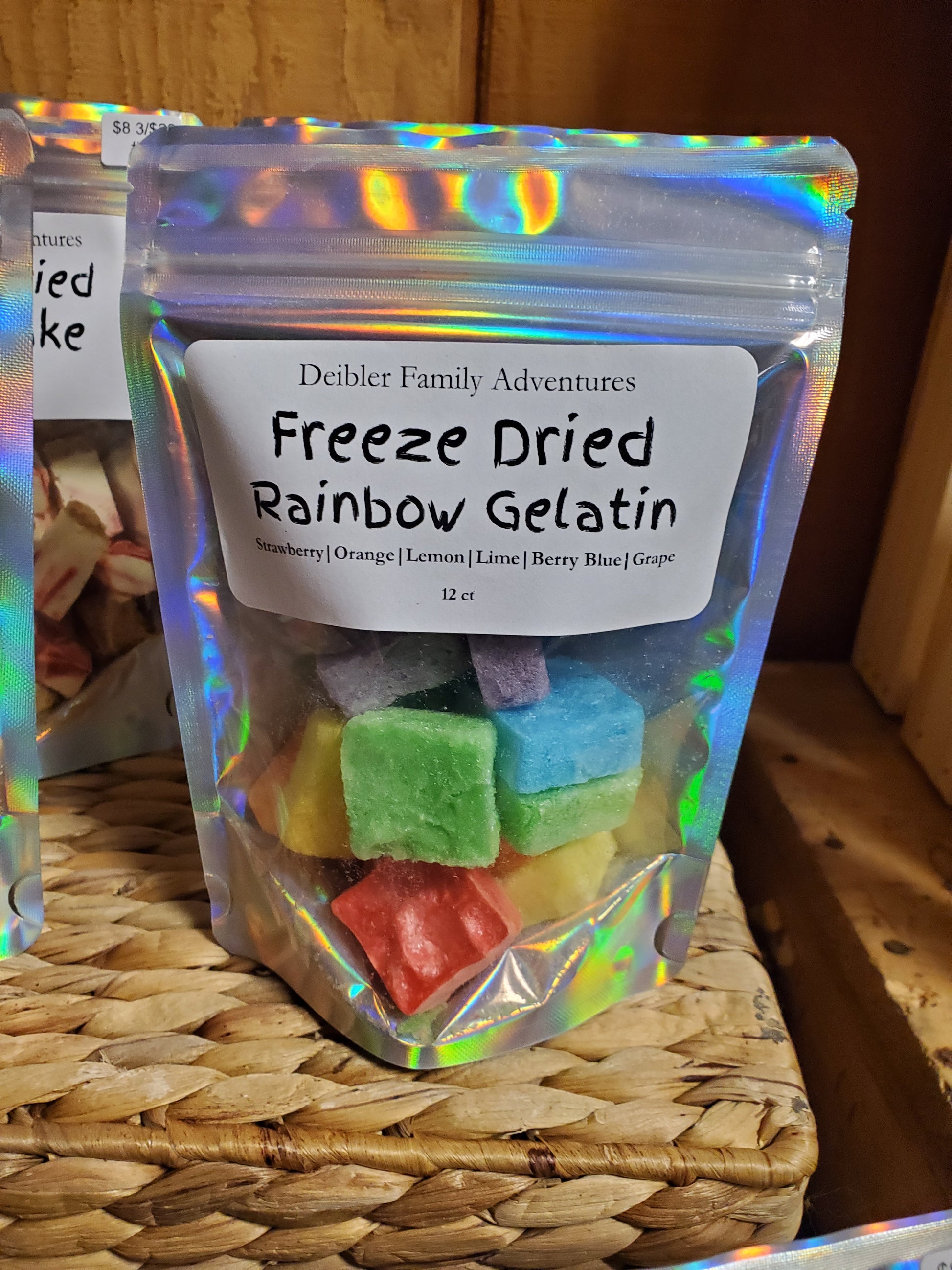 Freeze drying changes the texture of the gelatin to make them crunchy and melt in your mouth.